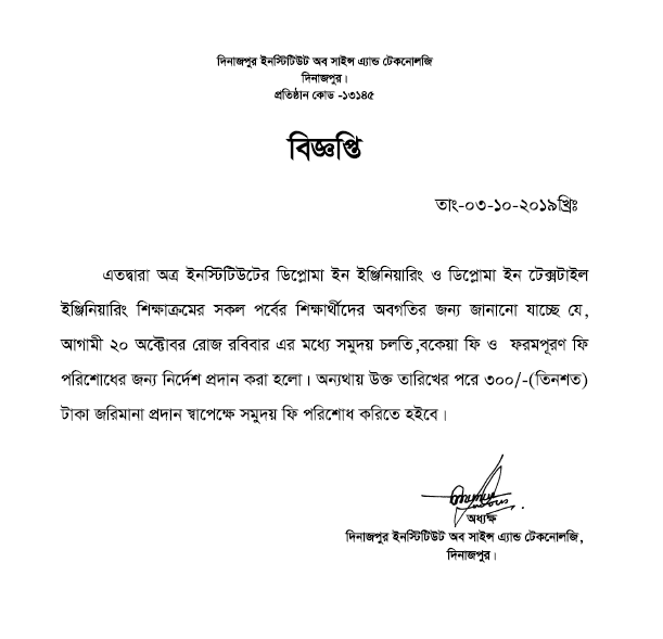 কোন বিষয়ে বুঝতে সমস্যা হলে অবশ্যই নিজ নিজ টেকনোলজির বিভাগীয় প্রধানের হেল্প নিবে।