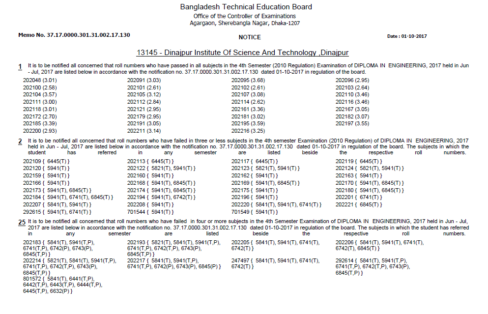 - দিনাজপুর ইন্সটিটিউট অফ সাইন্স এন্ড টেকনোলজির সকল রেজাল্ট অনুসন্ধান
