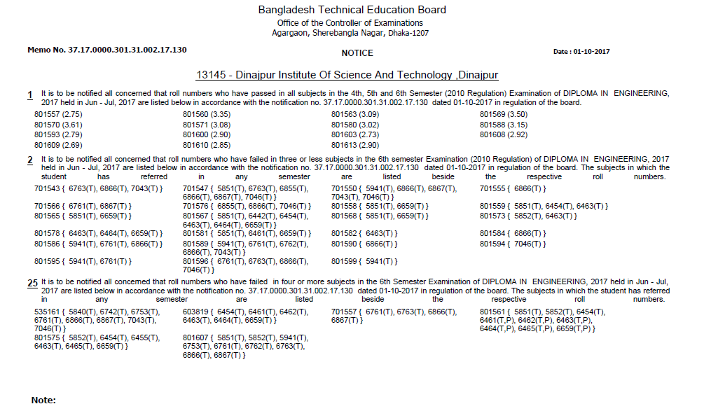 - ১০নভেম্বর২০১৭ডিপ্লোমা ইন ইঞ্জিনিয়ারিং শিক্ষাক্রমের পরীক্ষার সময়সূচী-২০১৭ ইং